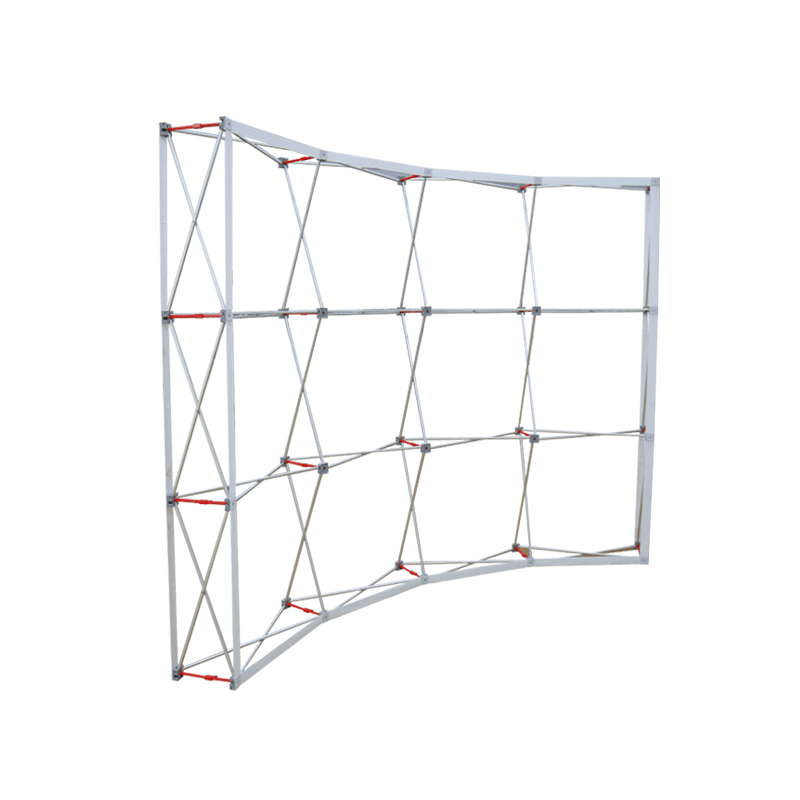 This magnetic pop up frame is available for a straight or a curved stand. The frame is made from quality aluminum. Very simple to assemble locks magnetically when expanded the quick and simplest way.