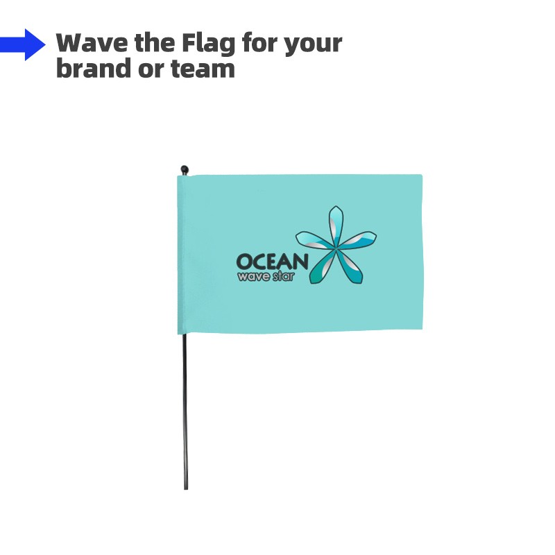 Hand flag, also called hand waving flag, is great for events like rallies, parades, or marches. With your logo or brand info printed on it, this small and economic flag can help deliver your message well in the crowd. It is also an excellent tool to support your sports team, your country, your company, or your school.