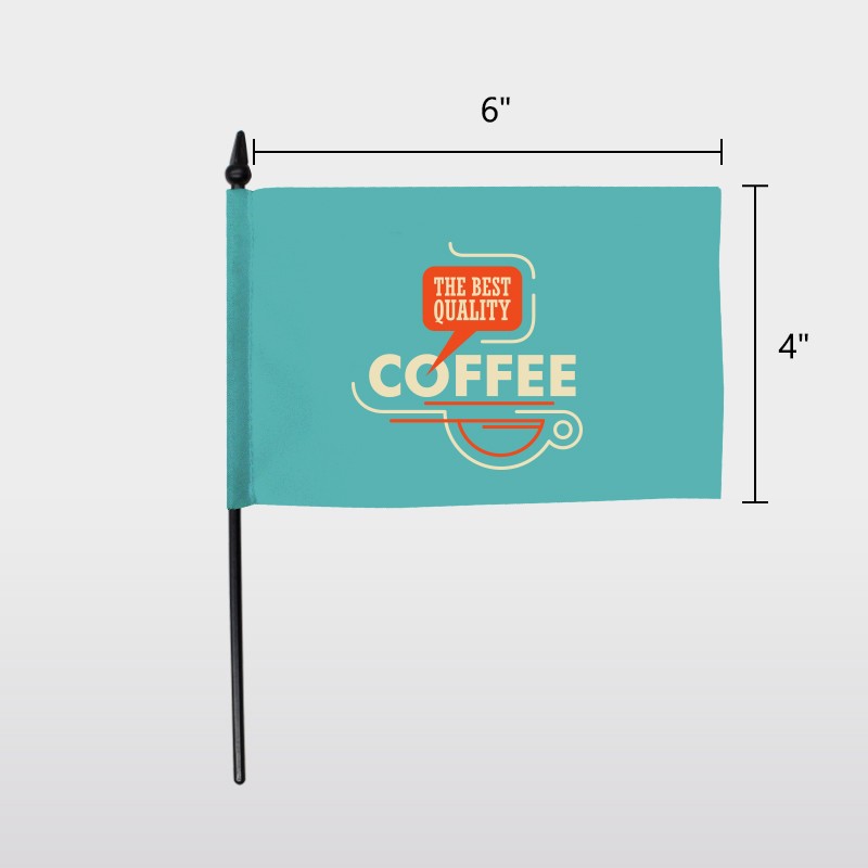 We offer these hand waver flags in standard sizes that include:4″x6″, 6″x9″, 8″x12″, 12″x18″, and 24″x36″. Different hardware options like plastic poles, wooden poles, and PVC poles are available for different sizes of flags, you can choose according to your needs and budget.