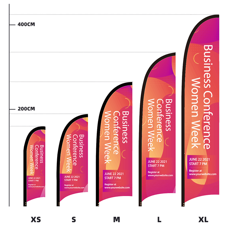 Note: The S size is not compatible with others. If the height exceeds XL after adding multiple center poles, a custom flag is required to match the flag pole.