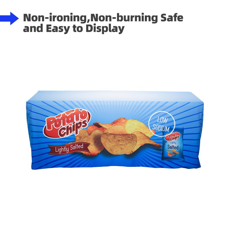 We offer table covers of standard sizes to fit 4ft, 6ft and 8ft display tables. Also, we can offer a matching print service for your customized display table. Just tell us your table sizes and we can do the matched table cover.