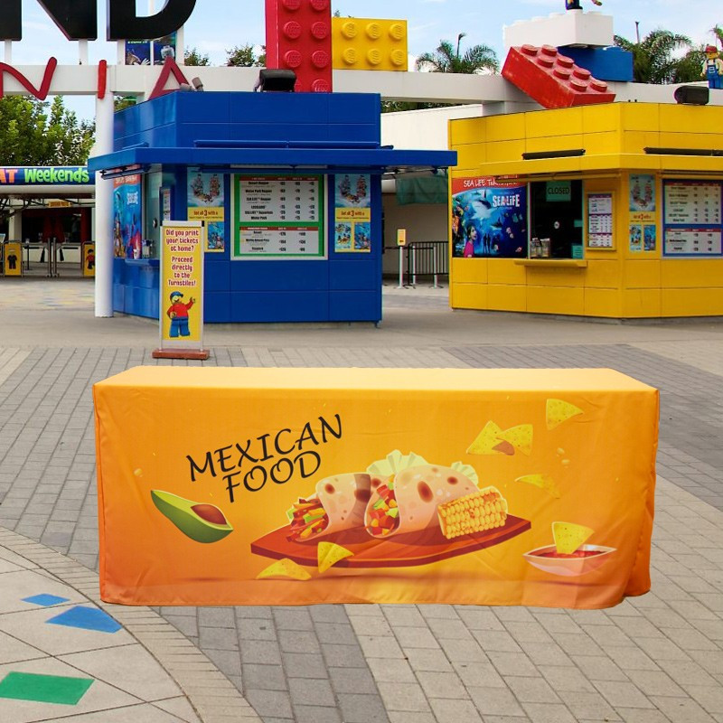 Standard sizes, like 4ft, 6ft, and 8ft, and customized sizes are available at CFM online store. And if you need it, we can offer a matching print service for your display table. Just tell us your table sizes and we can do the personalized custom fitted table covers according to your table sizes.