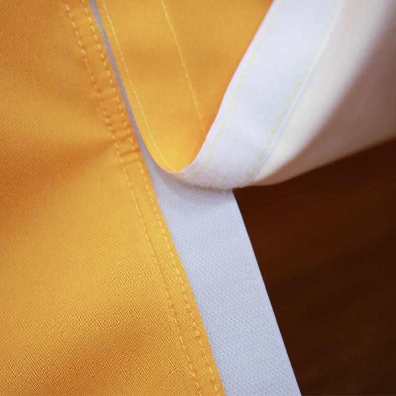 Just as the name indicates, the back side of this table cover is sewn with a Velcro strap. With the Velcro strap, you can easily open and close the back when you store something important underneath the table. So when you need to make sure of the safety of your storage at a trade show or public event, the zipper back fitted table cover would be a must-have marketing tool.