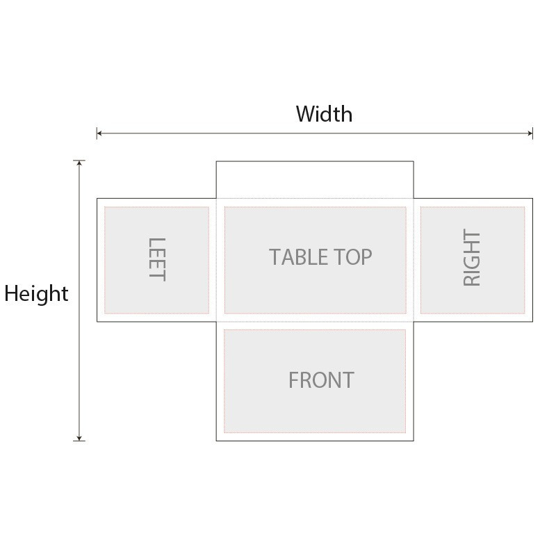 The fitted table cover with open back is available in 4ft, 6ft, 8ft and custom sizes. If you have a table, just tell us the length, width, and height of your table, and we can do the matching print to fit it. From size to colors, our custom fitted tablecloths are made according to your needs.