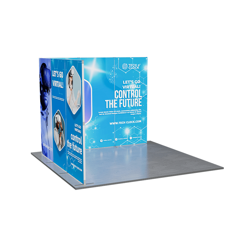 This kit includes two large background walls that can be vertically connected, creating a seamless and impressive backdrop for any event. Perfect for trade shows, retail environments, and corporate presentations, this display kit combines ease of use with high-quality visuals to ensure your brand stands out.