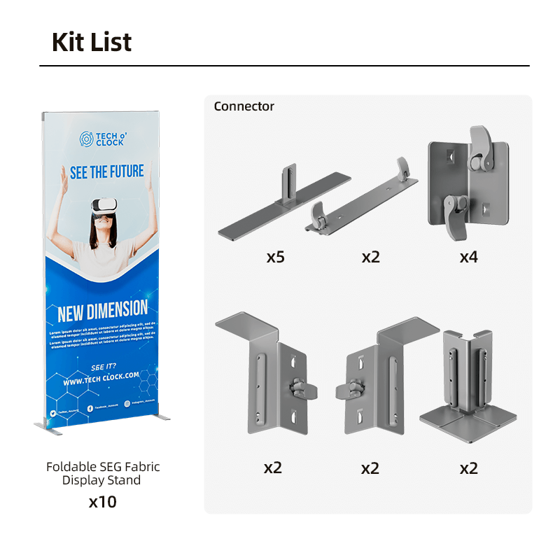 Utilizing SEG technology, the fabric graphics fit perfectly into the frame, creating a smooth, edge-to-edge display without visible seams. The frames are foldable, ensuring quick and easy assembly and disassembly. This design saves time and effort, and it also makes the kit highly portable and easy to store.