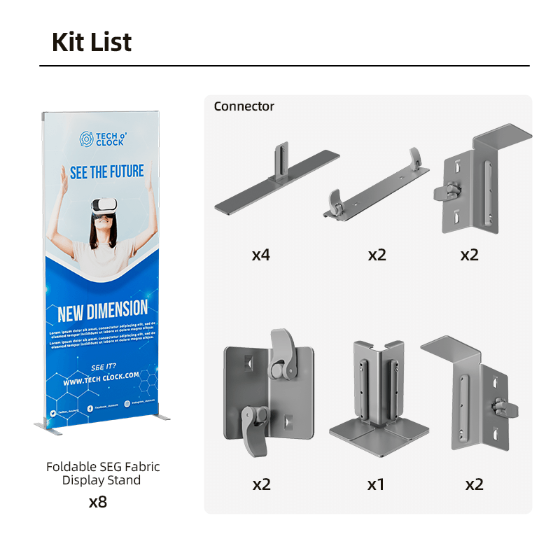 Utilizing SEG technology, the fabric graphics fit perfectly into the frame, creating a smooth, edge-to-edge display without visible seams. The frames are foldable, ensuring quick and easy assembly and disassembly. This design saves time and effort, and it also makes the kit highly portable and easy to store.