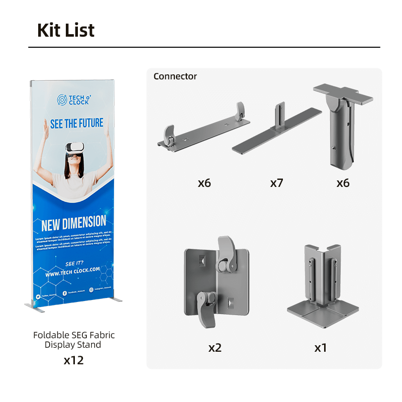 Utilizing SEG technology, the fabric graphics fit perfectly into the frame, creating a smooth, edge-to-edge display without visible seams. The frames are foldable, ensuring quick and easy assembly and disassembly. This design saves time and effort, and it also makes the kit highly portable and easy to store.