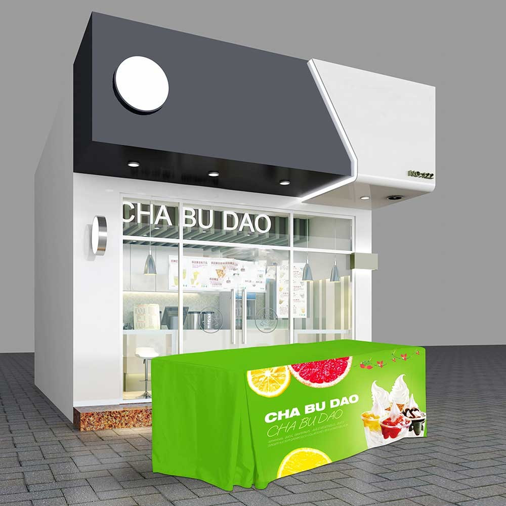 are recommended for indoor or outdoor use. And 165g 300D polyester which is a more economy fabric option, is suggested to be used when you have a tight budget. If you want to set up an attention-grabbing display, you can have a try with our fluorescent polyester tablecloth that will make your table display stand out at night.