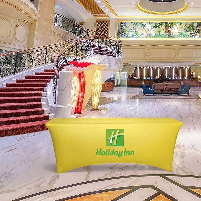 A: Yes, the fitted table cover sizes are 4′, 6′, and 8′ in our store, but the size of the fitted table cover can also be customized according to your table sizes or template sizes. If you need customized sizes, please contact our representatives for customer service.