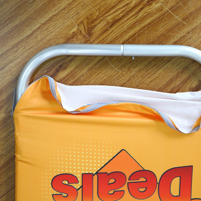 Single- or double-sided graphics – You can print your logo on the banner single-sided or double-sided. A double-sided graphic cover will be viewable from both the front and back of the display.
