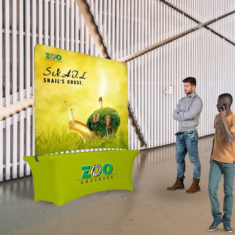 These tabletop banners can be made from 180g Elastic Polyester, 250g soft knitted, or 300D polyester. Here are the details of the three fabrics and you can choose the right one for your needs.