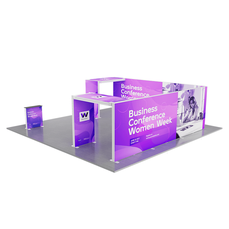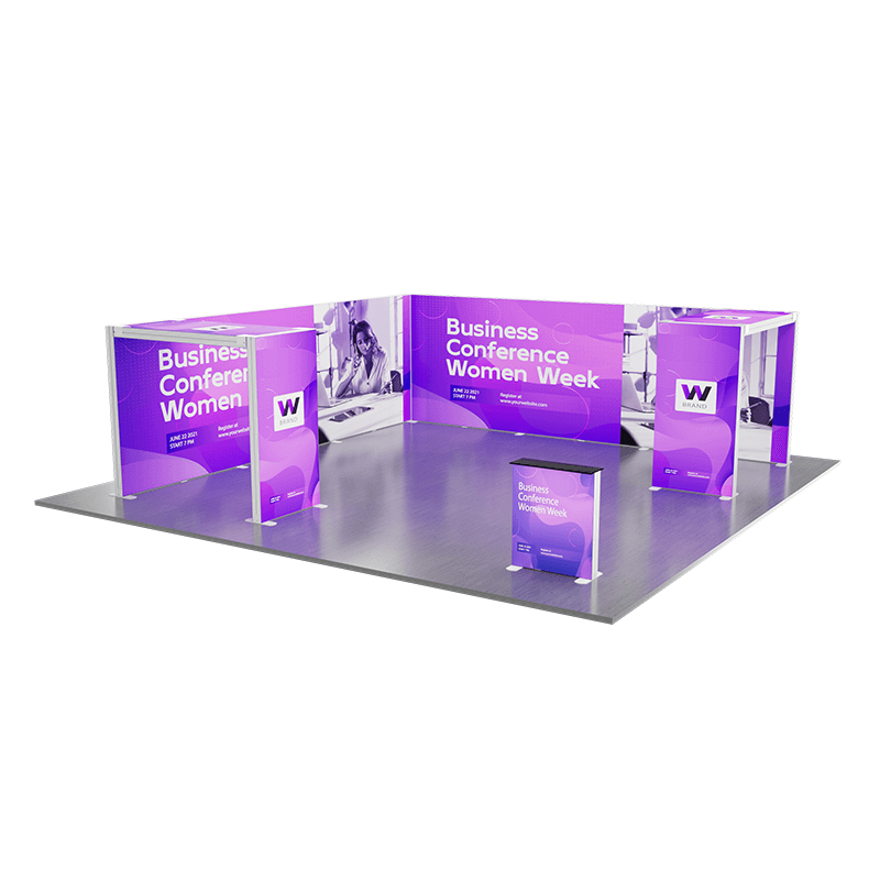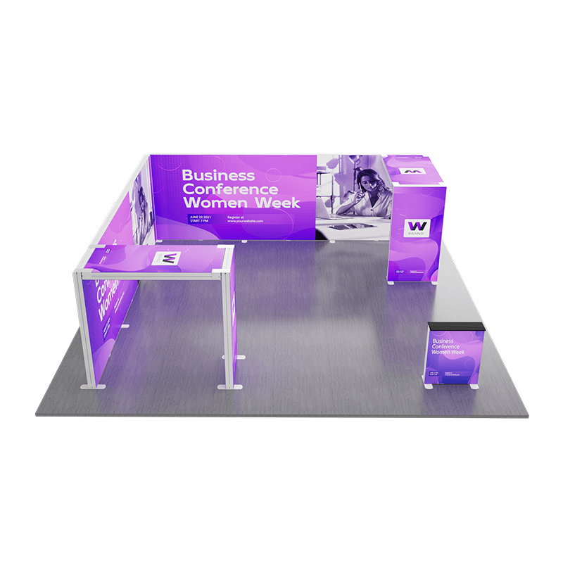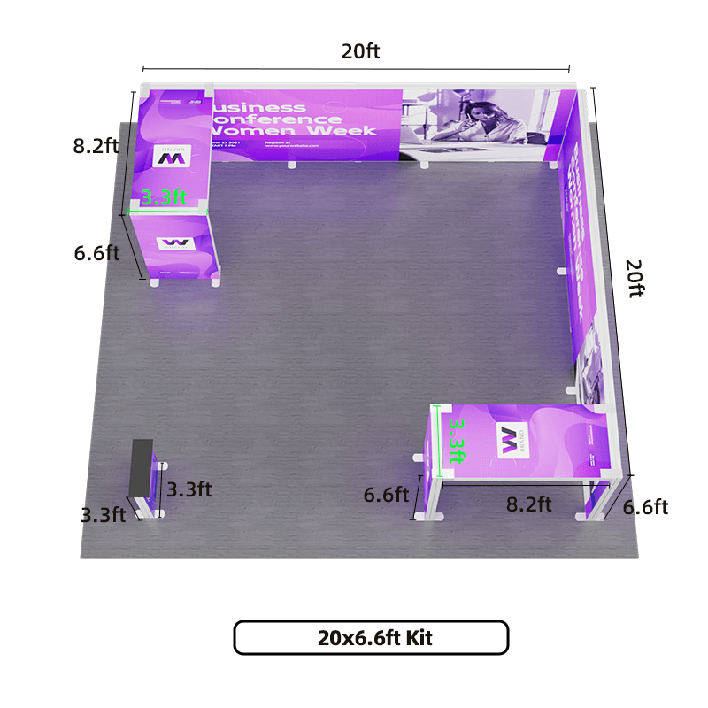 Modular Design – The kit likely features modular components that can be easily assembled and reconfigured to fit various booth layouts and sizes. This modularity offers flexibility in adapting to different exhibition spaces.